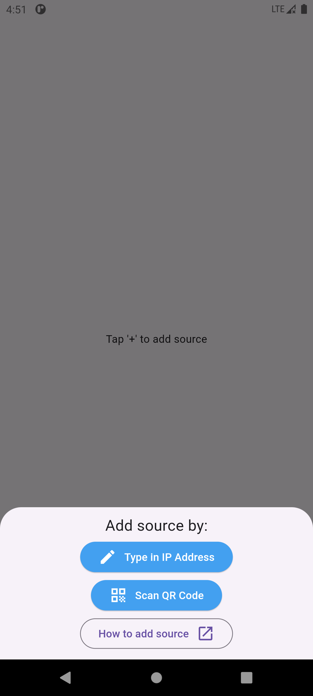 Click the QR Code icon to scan the QR Code generated by Noise Route Desktop. After the QR Code is scanned and parsed correctly, you will be redirected to the main screen, where you will see the newly-added device. Audio should start playing (if any).