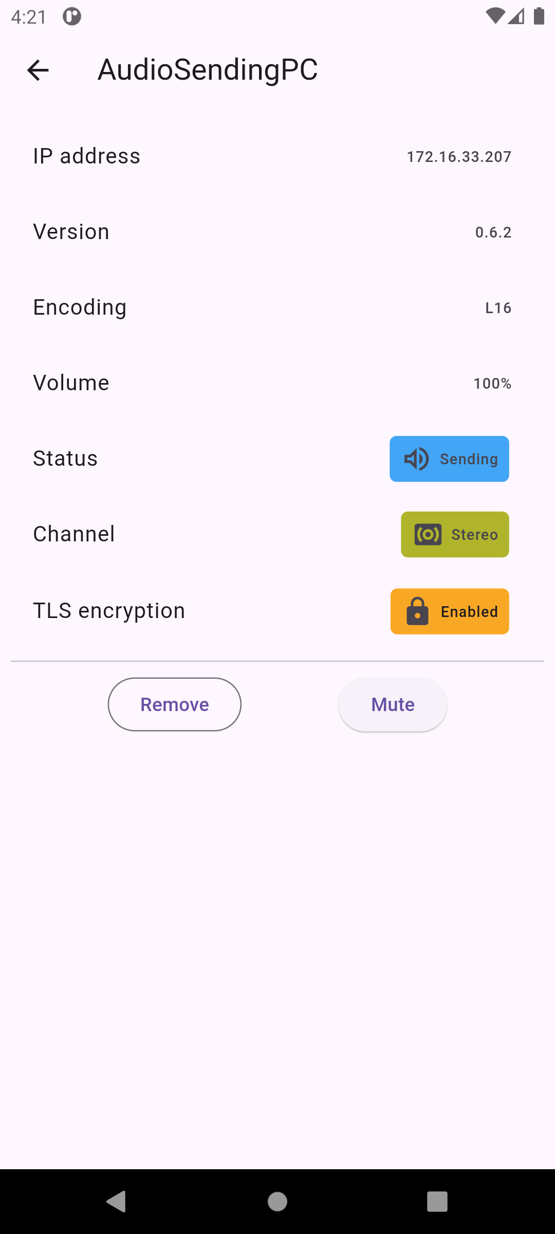 After typing in the IP address and establishing a connection between your device and the desktop, the popup will disappear. You should see the newly-added device with the corresponding information, and audio should start streaming.